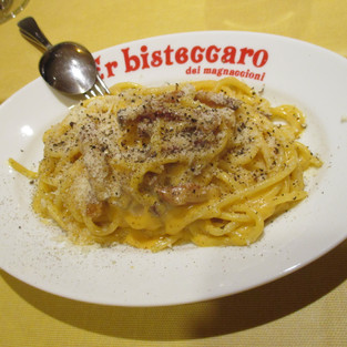 思いの外、なおもお腹に余裕があるので、最後にローマ発祥のパスタ「スパゲッティカルボナーラ」(1620円)を味わった。じっくり炙ったグアンチャーレ(豚ほほ肉の塩漬け)の旨味と香ばしさが、卵の濃厚な味わいと絡み合う。